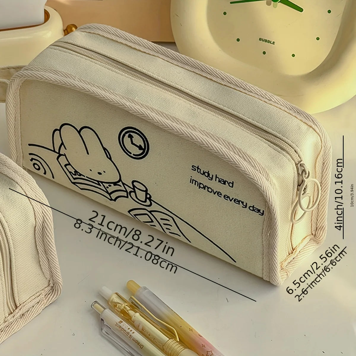 Multi-layer Cartoon Puppy Canvas Pencil Bag Minimalism Kawaii Korean Stationery Cute Bag Office Culture and Educational Supplies