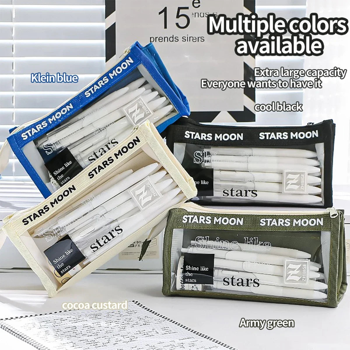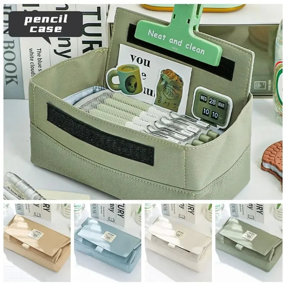 Large Capacity Pencil Case Simple Solid Color Stationery Box Double Layer Multifunctional Pen Pouch Students School Supplies