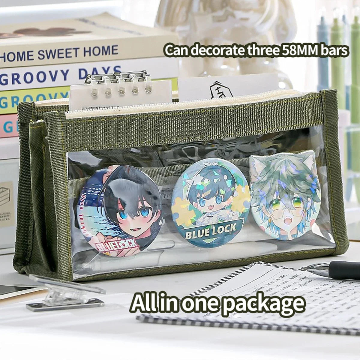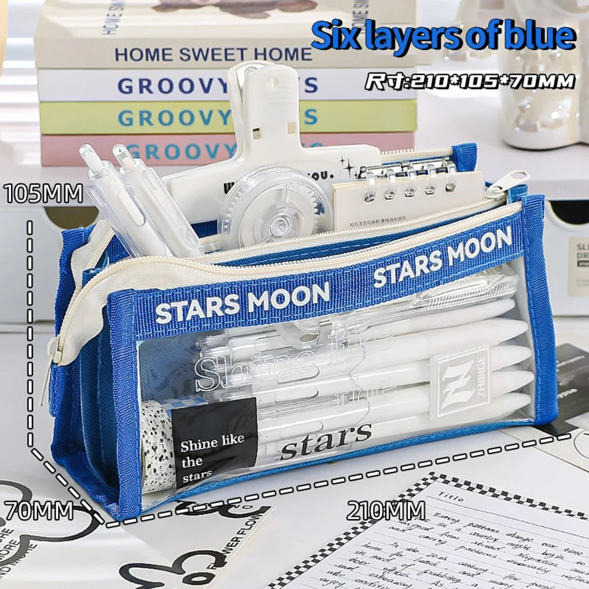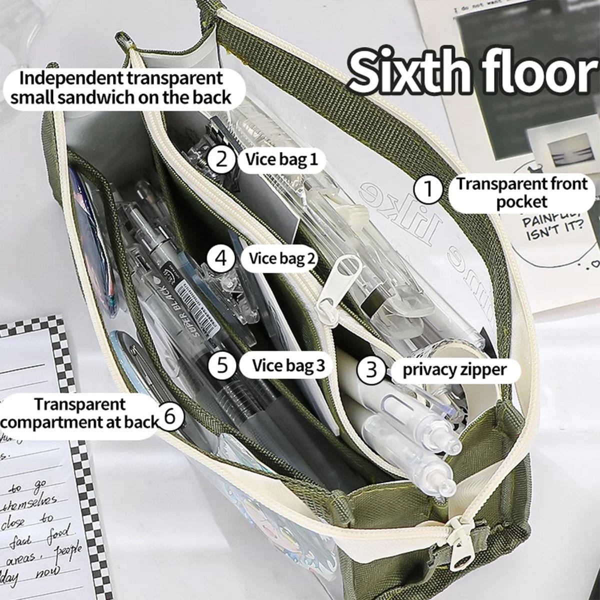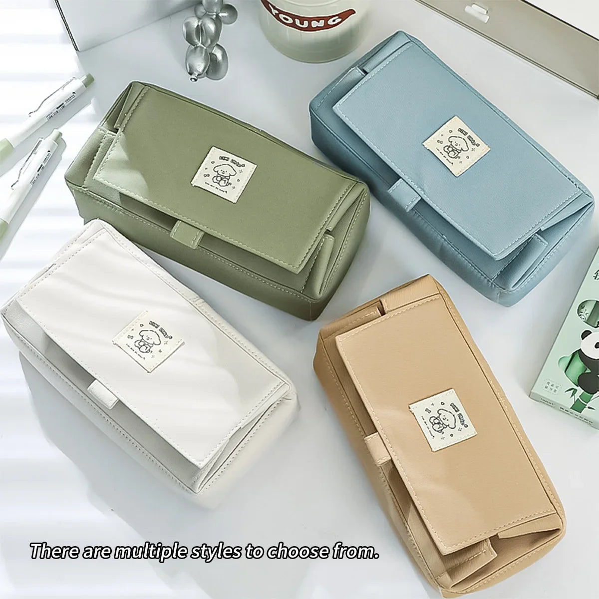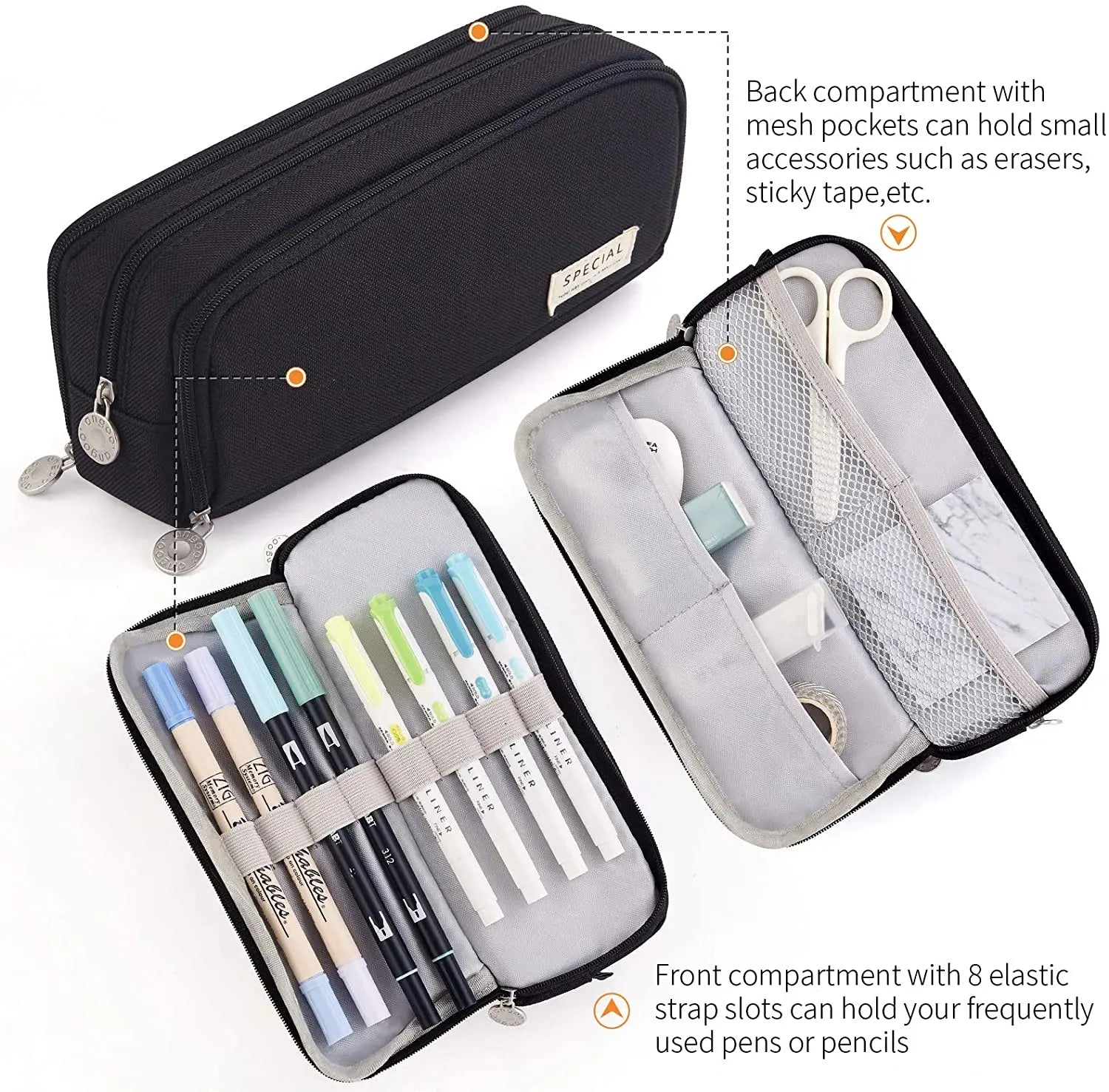 Kawaii Large Capacity Pencil Case 3 Compartment Pouch Pen Bag Double Side Opening Student Stationery Organizer School Supplies
