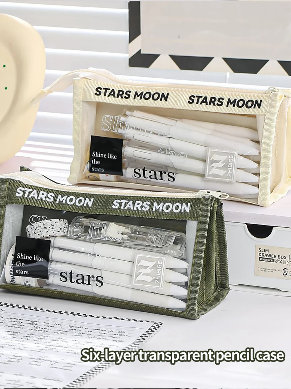 Triangle Transparent Pencil Case Kawaii Korean Stationery Large Capacity Back To School Office Culture and Education Supplies