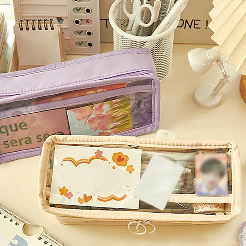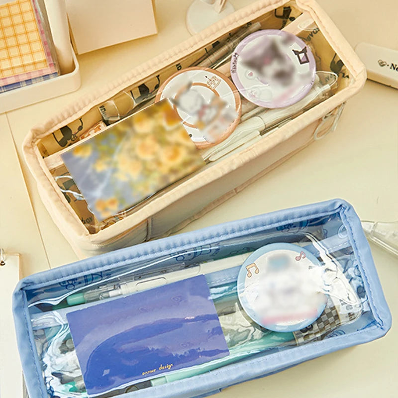 1Pc Kawaii Transparent Pencil Case Large Capacity Waterproof Pen Box for Girls Cosmetic Bag Stationery Office School Supplies