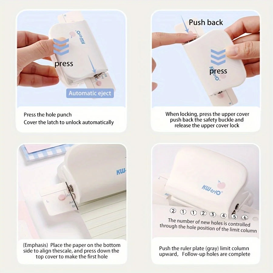 6 hole punch: Desk storage, ideal for binding notebooks and documents, quick positioning of holes, manual binding supplies