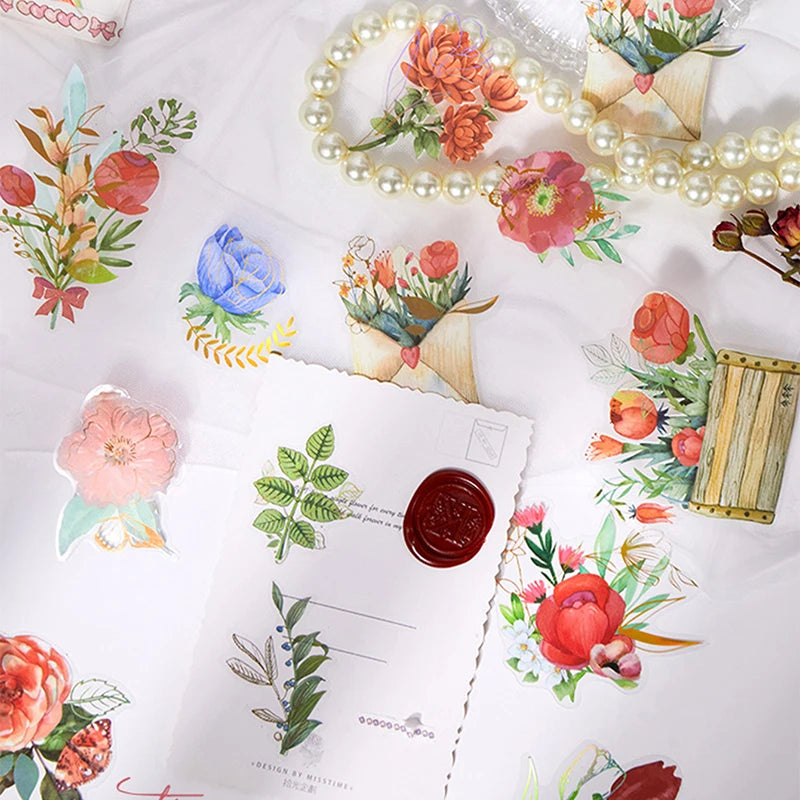6 style 40pcs/Bag PET Stickers Hot Stamping Plant Flower Theme Mug Mobile Phone Decorative Handbook DIY Collage Stationery