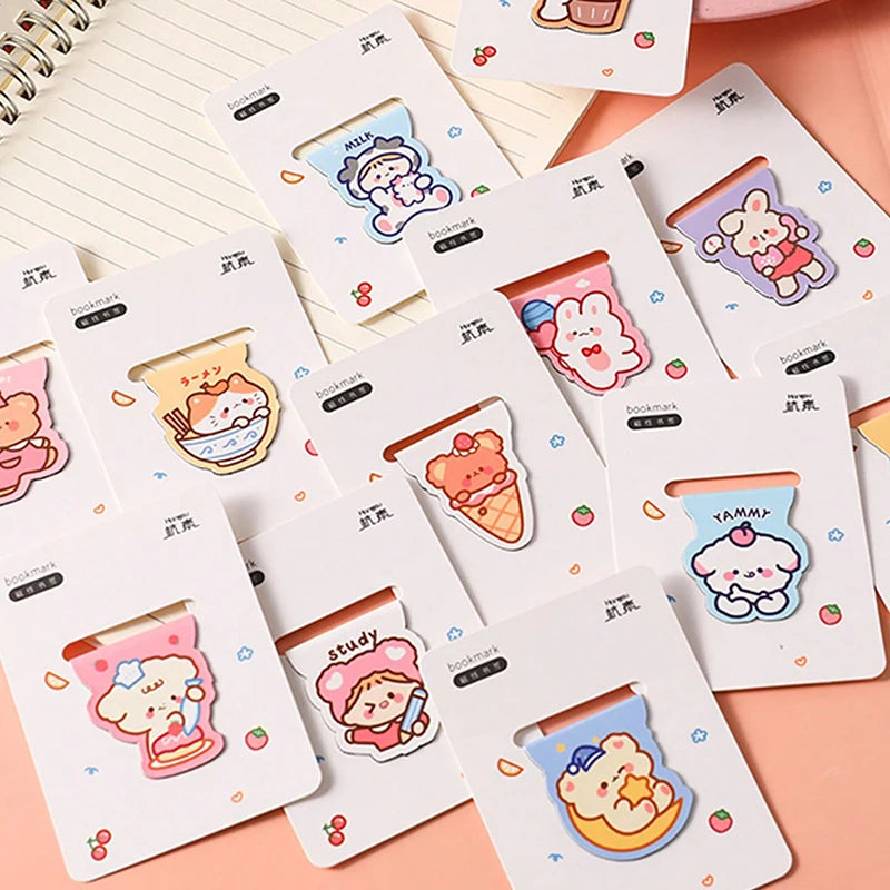5pcs Cute Cartoon Bear Magnetic Bookmark Paper Clip Kawaii Rabbit Student Stationery Books Marker of Page School Office Supply