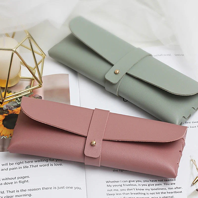 1pc Simple Pen Holder PU Leather Pencil Bag Vintage Style Roll Pencil Case Pencil Bag School Office Supplies