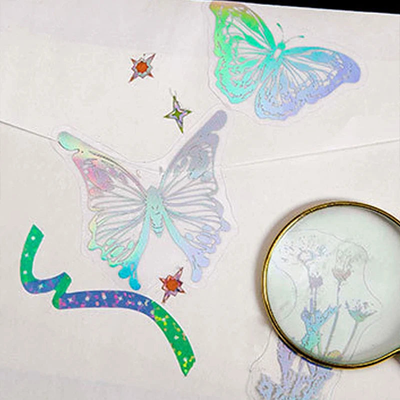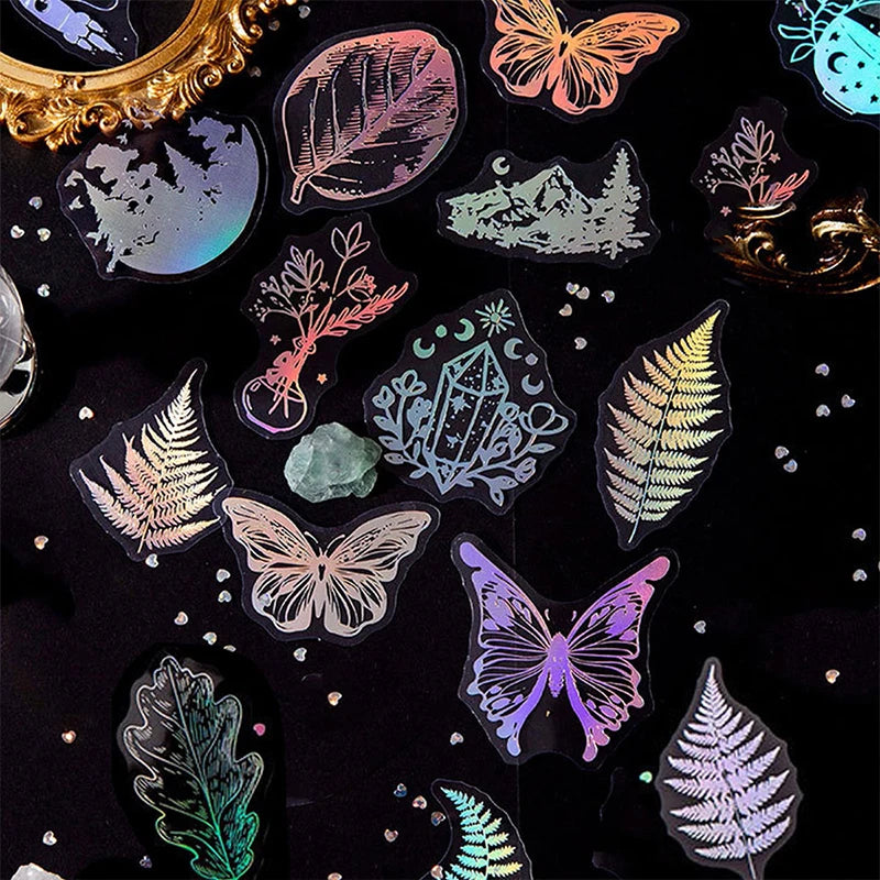 45Pcs Cute Butterfly moon Decorative PVC silver Stickers Scrapbooking diy Label Diary Stationery Album Journal Planner