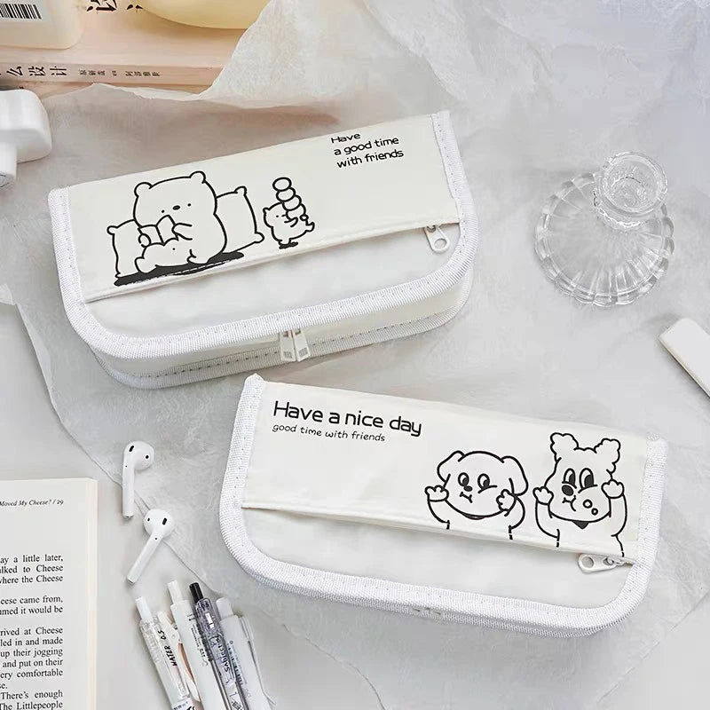 1Pc Animal Print Zipper Pencil Bag Multi-function Stationery Case Cute Storage Bag for Student School Supplies Large-capacity