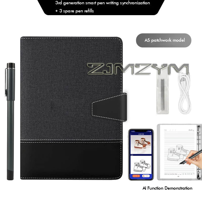Paper Screen Sync Notebook AI Bluetooth Digital Handwriting Note Book A5 Smart Sync Pen Diary Writing Set