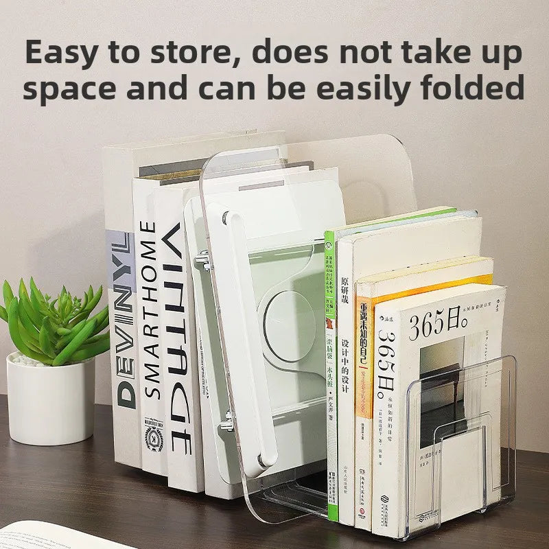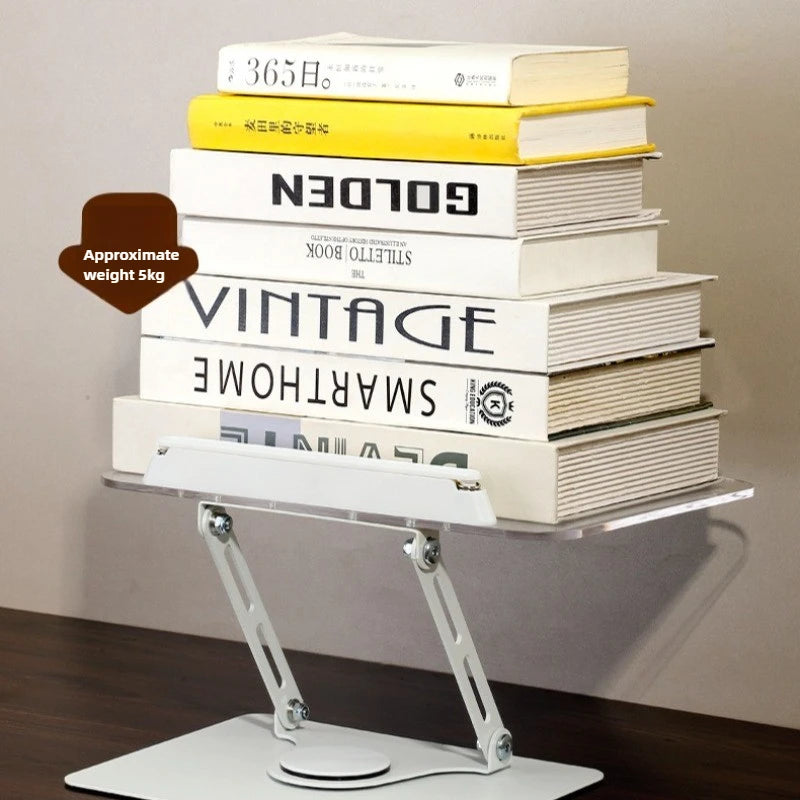 Acrylic Book Stand with 360° Rotating Base Elastic Page Clips for Reading Foldable Desktop Riser Cookbook Stand Textbook Stand