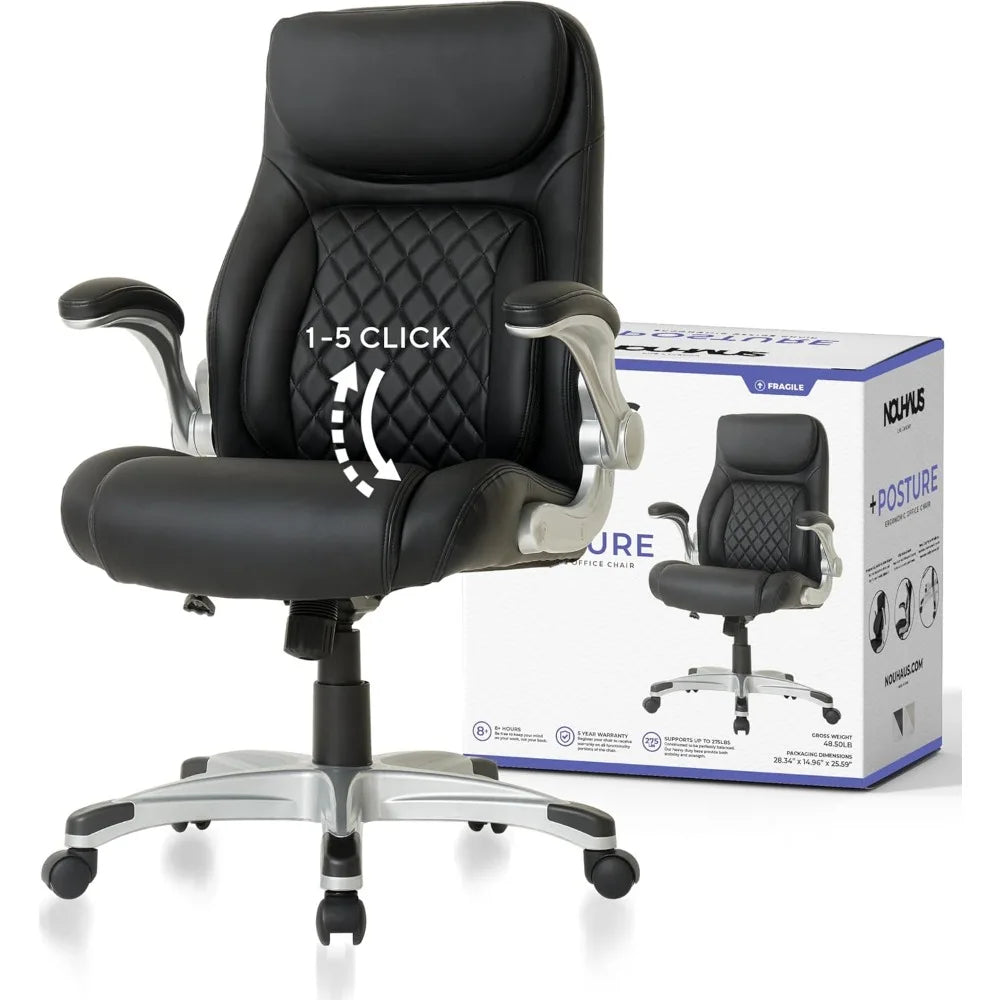 Ergonomic PU Leather Office Chair with Lumbar Support and Adjustable Armrests: Modern Executive Chair