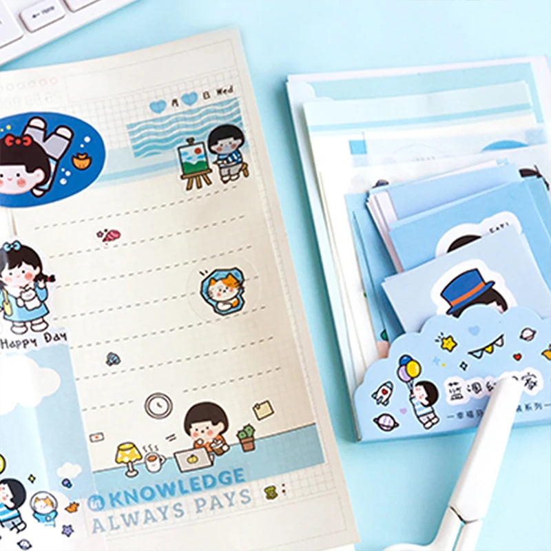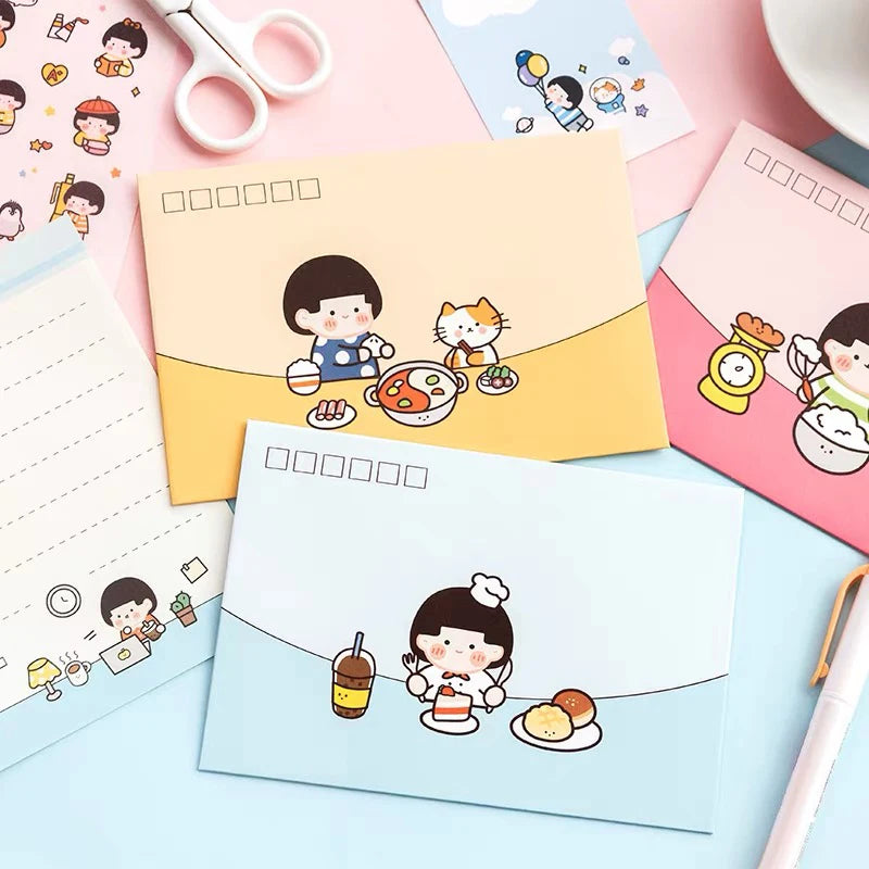 35pcs Cartoon Handbook Stickers Envelope Letter Set Cute Notes Student Handbook Decoration