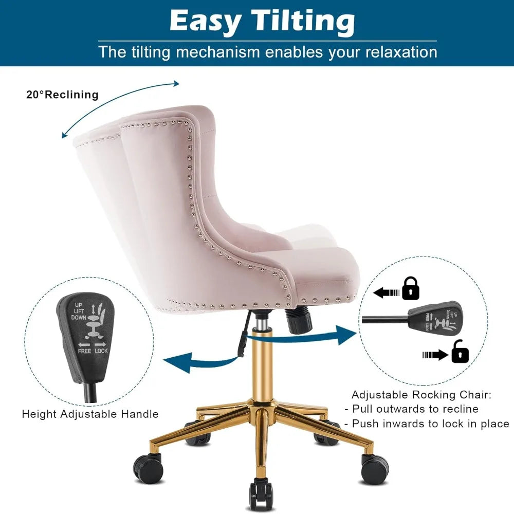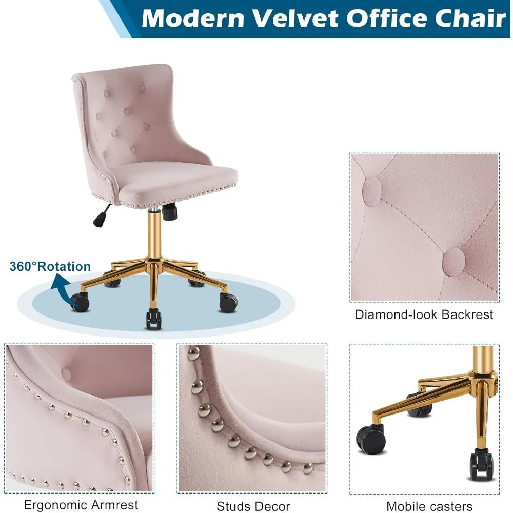 Modern Velvet Home Office Chair Mid-Back Computer Task Chair with Swivel Height Adjustment Tufted Upholstered Office Task Chair