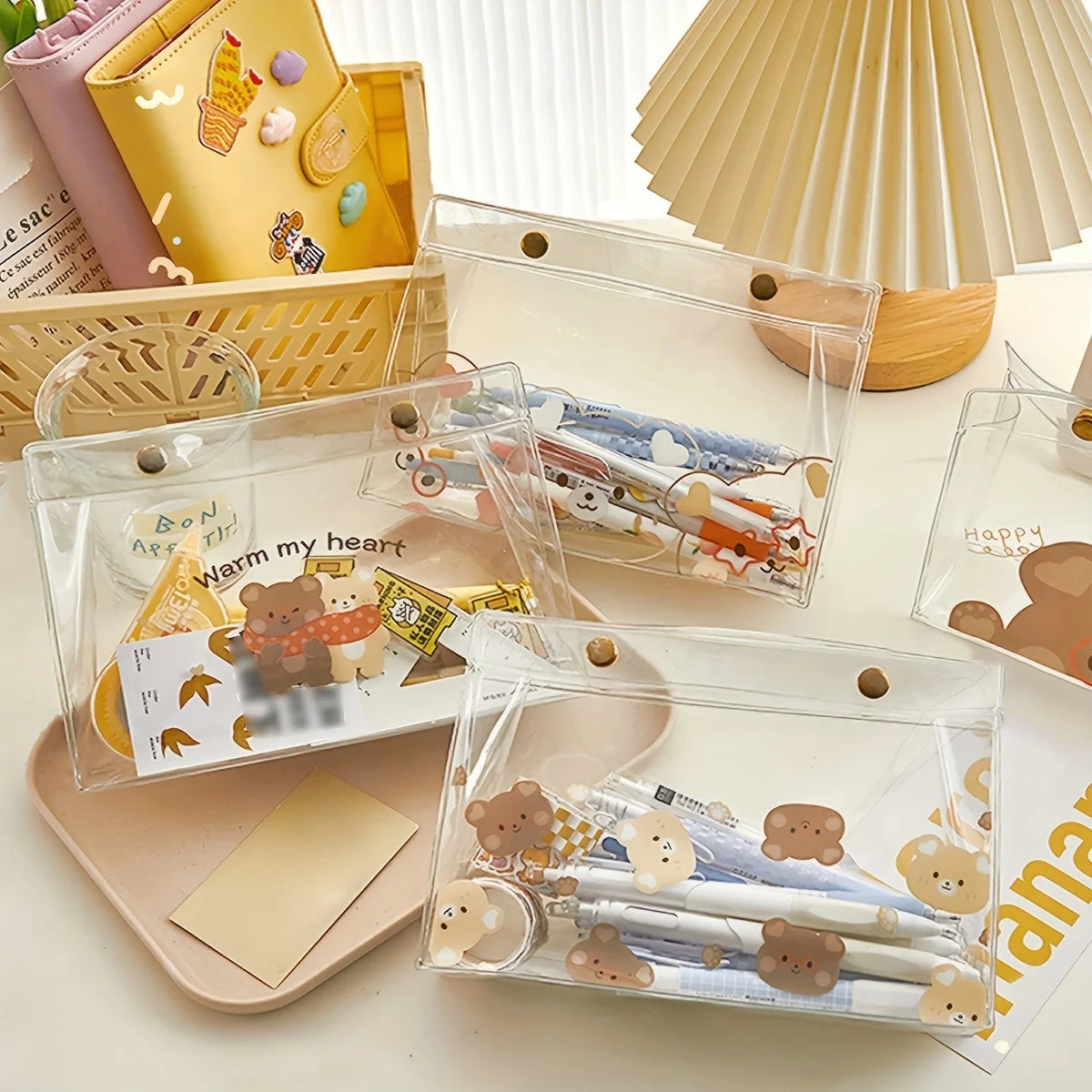 Large capacity high appearance level pencil case transparent exam special student pencil case, cute bear pattern, back to school