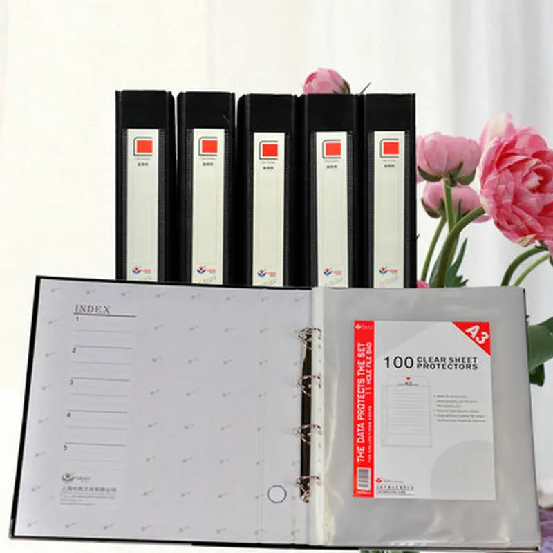 Vertical 4-Rings Binder A3 Folder For Documents A3 File Storage Transparent Binder Sleeves A3 Paper Organizer