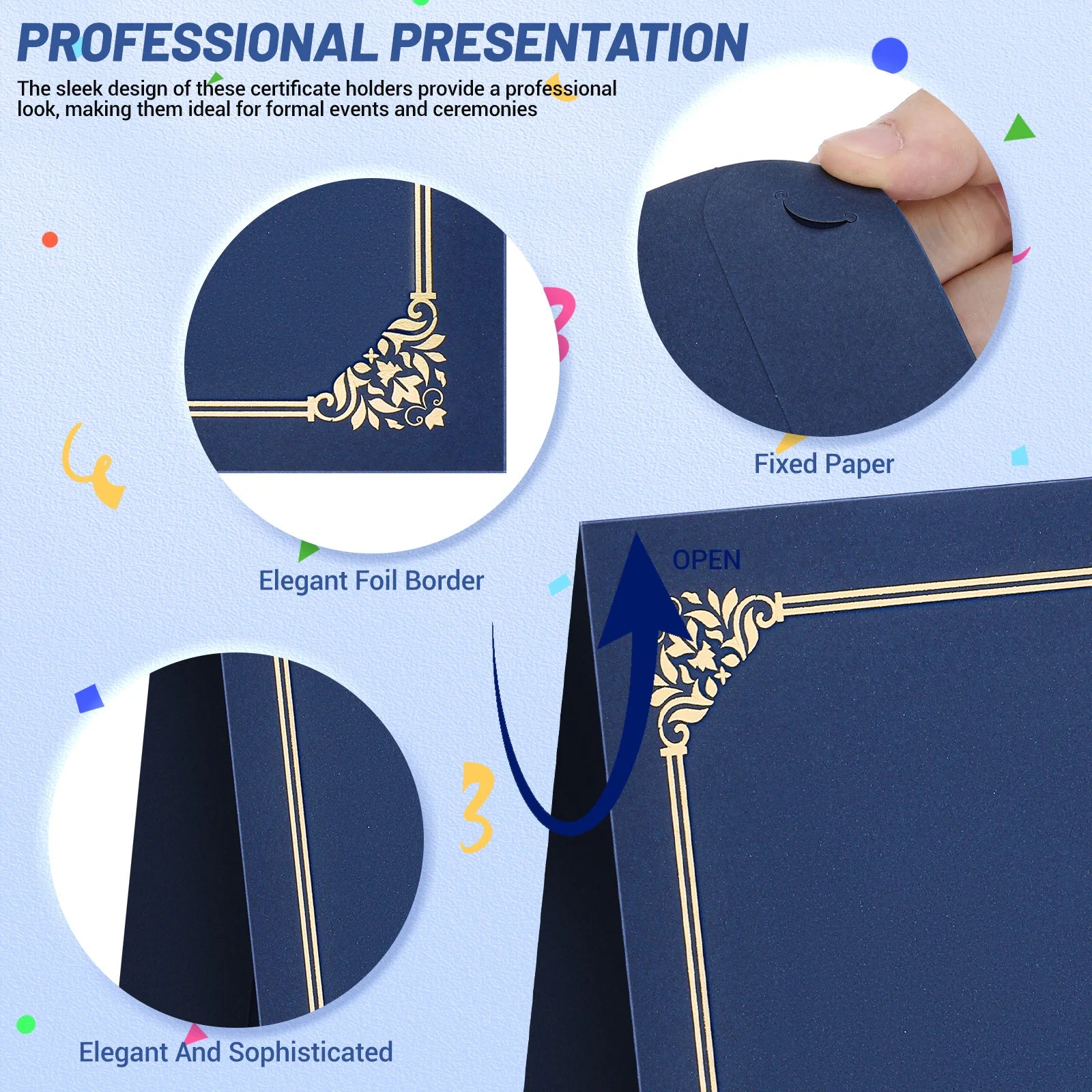 30Pcs Foil Edge Certificate Holder Elegant Diploma Cover for Graduation Award Document Display Sturdy Paper Protection Folder
