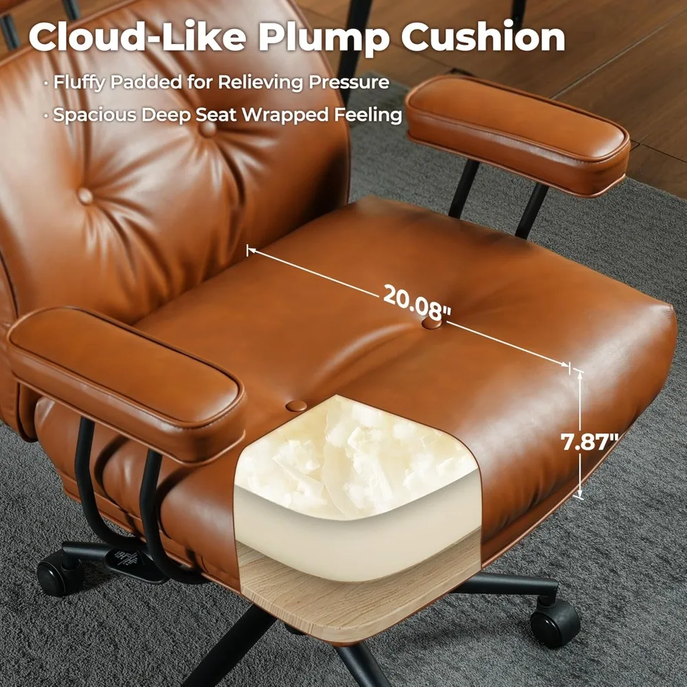- Mid-Century Modern Chair: This modern MCM office chair is made of high-quality faux leather fabric, unique retro and stylish design to add aesthetic style to your office, practical ultra-wide seat and high back support, 7.87 inches thick seat cushion and fluffy back cushion filled with fully cotton, providing comfortable soft cloud-like wrapped sitting experience