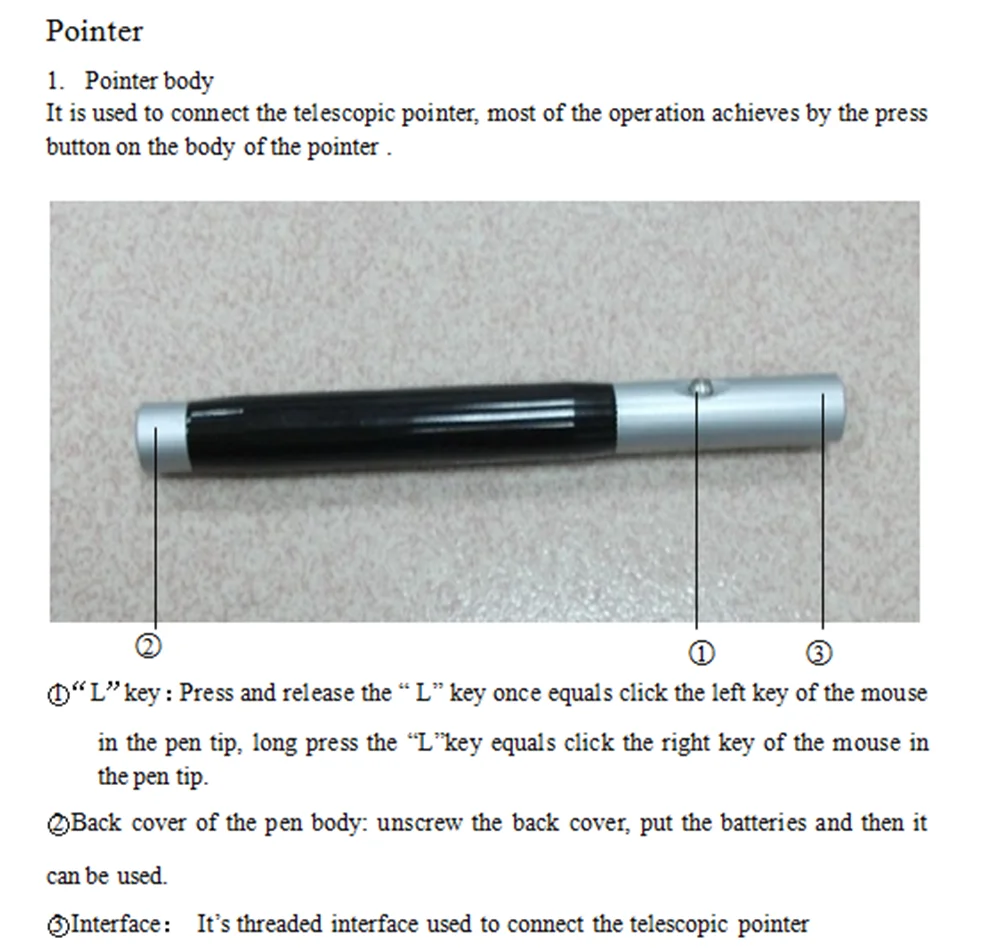 It is used to connect the telescopic pointer, most of the operation achieves by the press button on the body of the pointer.