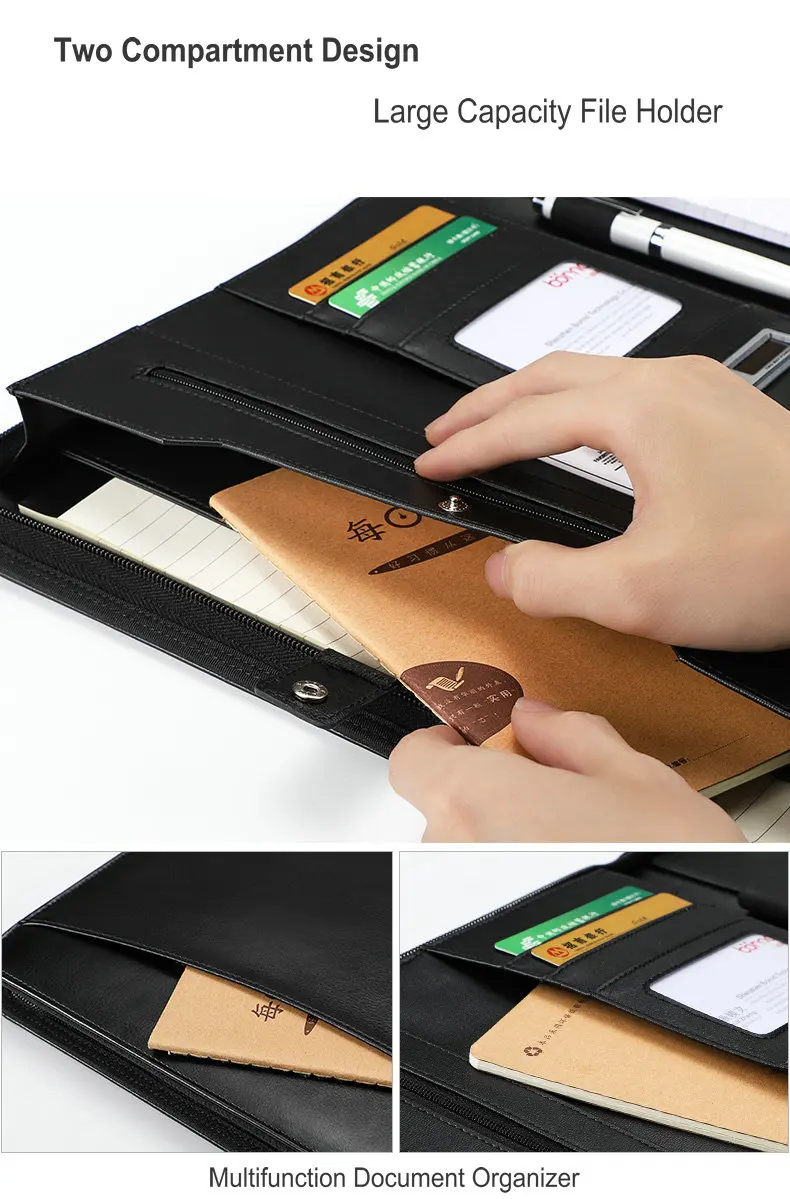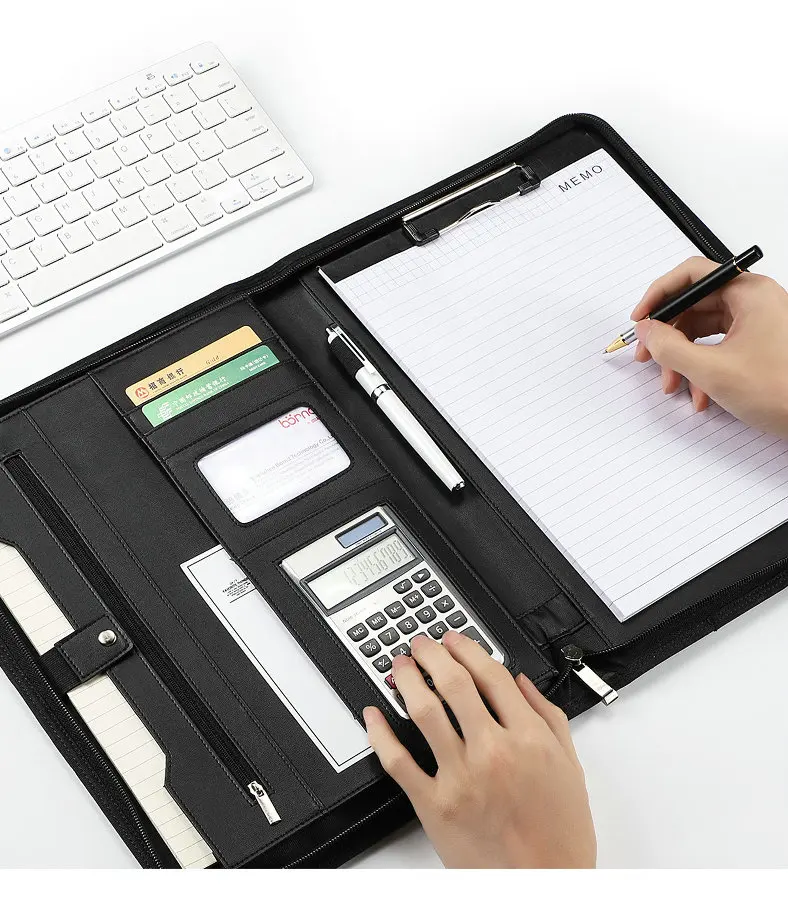 Multifunctional Portafolio A4 Conference Folder Calculator Business Padfolio PU Leather File Folders High Quality